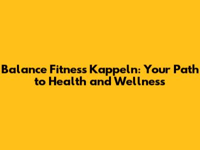 Balance Fitness Kappeln: Your Path To Health And Wellness