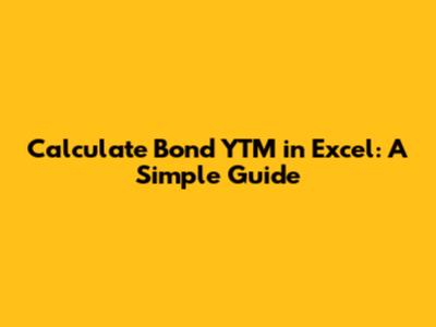 Calculate Bond YTM In Excel: A Simple Guide