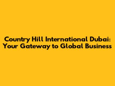 Country Hill International Dubai: Your Gateway To Global Business