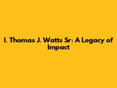 I. Thomas J. Watts Sr: Life, Legacy, And Impact