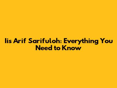 Iis Arif Sarifuloh: Everything You Need To Know