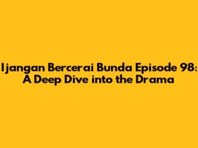 Hey guys! Let's dive deep into Ijangan Bercerai Bunda Episode 98. This episode is a rollercoaster of emotions, plot twists, and character revelations that keeps you glued to the screen. We're going to break down all the key moments, analyze the characters' decisions, and discuss the implications for the rest of the series. So, grab your popcorn, and let’s get started!