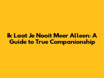 Ik Laat Je Nooit Meer Alleen: A Guide To True Companionship