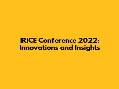 IRICE Conference 2022: Innovations And Insights