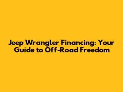 Hey guys, so you're dreaming of owning a Jeep Wrangler? Awesome choice! The Wrangler is an icon, a symbol of freedom, and the ultimate off-road machine. But before you can hit the trails, you need to figure out how to pay for it. That's where Jeep Wrangler financing comes in. Don't worry, it's not as daunting as scaling a boulder field. This guide will break down everything you need to know about financing your Wrangler, from understanding your options to securing the best possible deal.