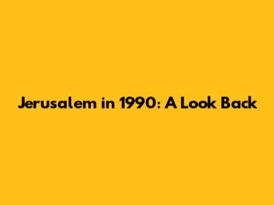 Jerusalem In 1990: A Look Back