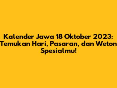 Hey guys! Pernah nggak sih kalian penasaran sama arti di balik tanggalan Jawa? Khususnya buat kalian yang lahir di tanggal 18 Oktober 2023, ada sesuatu yang spesial lho! Mari kita kupas tuntas kalender Jawa 18 Oktober 2023 ini, mulai dari hari, pasaran, sampai weton yang mungkin membawa keberuntungan atau tantangan buat kalian. Siapa tahu, dengan memahami ini, kalian bisa lebih siap menghadapi segala kemungkinan di hidup.