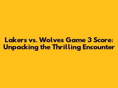 Lakers Vs. Wolves Game 3 Score: What You Need To Know