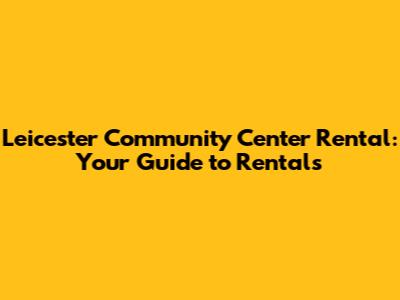 Leicester Community Center: Your Guide To Rentals