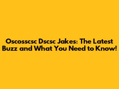 Oscosscsc Dscsc Jakes: News, Updates, And More!
