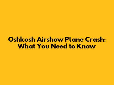 Oshkosh Airshow Plane Crash: What You Need To Know
