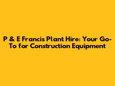 P & E Francis Plant Hire: Your Construction Equipment Solution