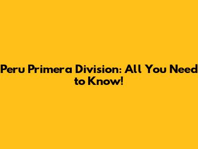Peru Primera Division: All You Need To Know!