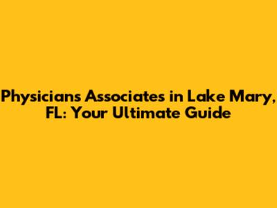 Physicians Associates In Lake Mary, FL: Your Guide