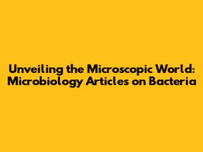 Unveiling The Microscopic World: Microbiology Articles On Bacteria